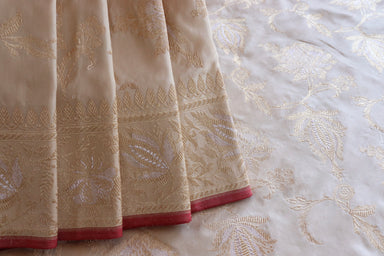 An Irresistible Silk Saree In A Subtle Colour Decorated With Painstakingly Hand Woven Animal Motifs And Beautiful Floral Zari Vines Made In Signatu...
