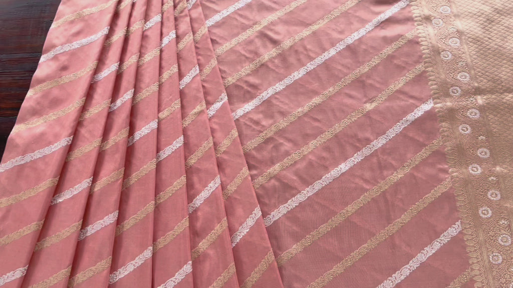 Peach Aada Jangla Pure Katan Silk Banarasi Saree