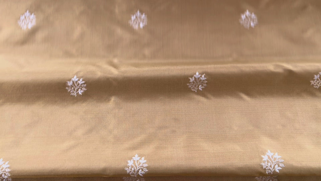 A Delightful Fabric Thaan With Gorgeous Floral Motifs Handcrafted In Signature Kadhua Weave On A Luxurious Katan Silk Base.