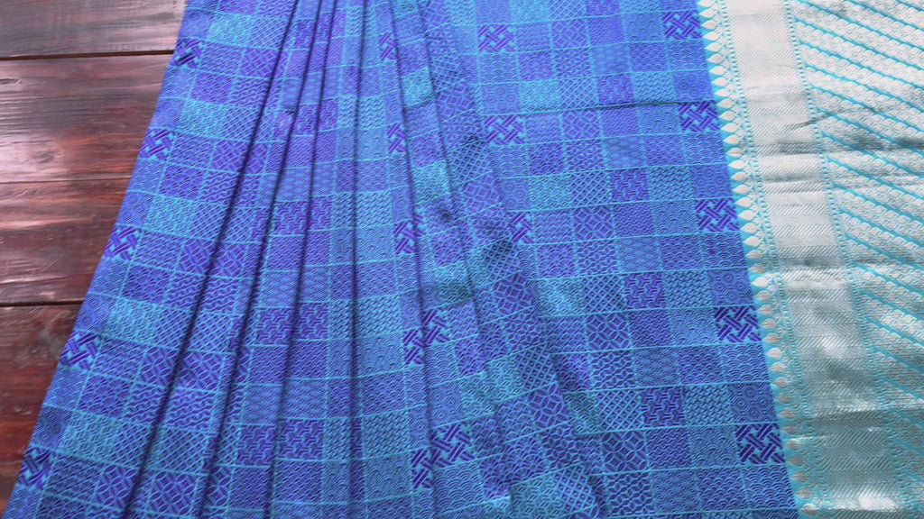 Blue Resham Handwoven Banarasi Tanchoi Silk Saree