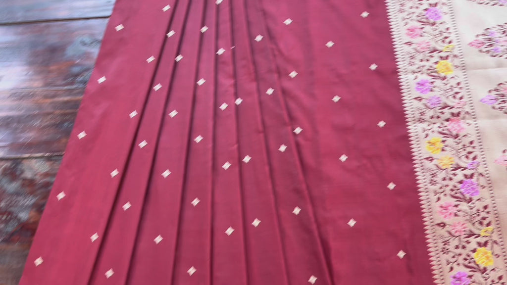Maroon Meenadar Kadhua Pure Silk Handloom Banarasi Saree