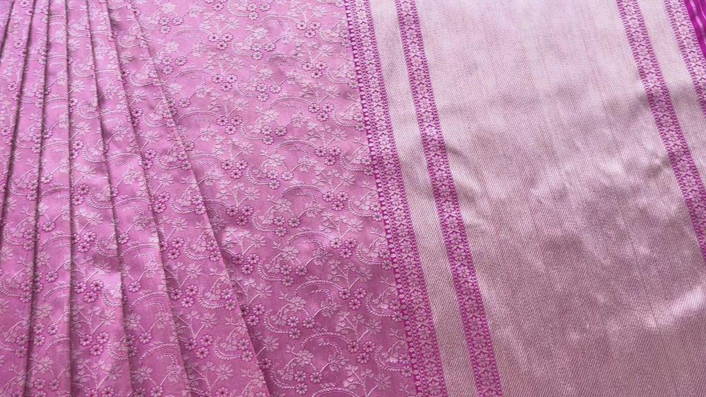 Pink Tanchoi Pure Silk Handloom Banarasi Saree