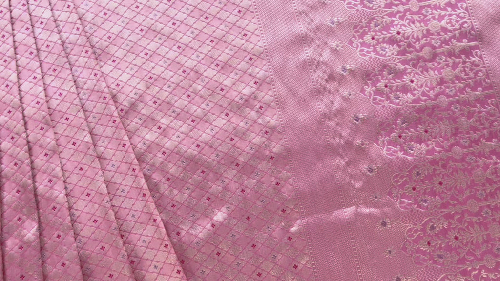 Pink Meenadar Tanchoi Pure Silk Handloom Banarasi Saree