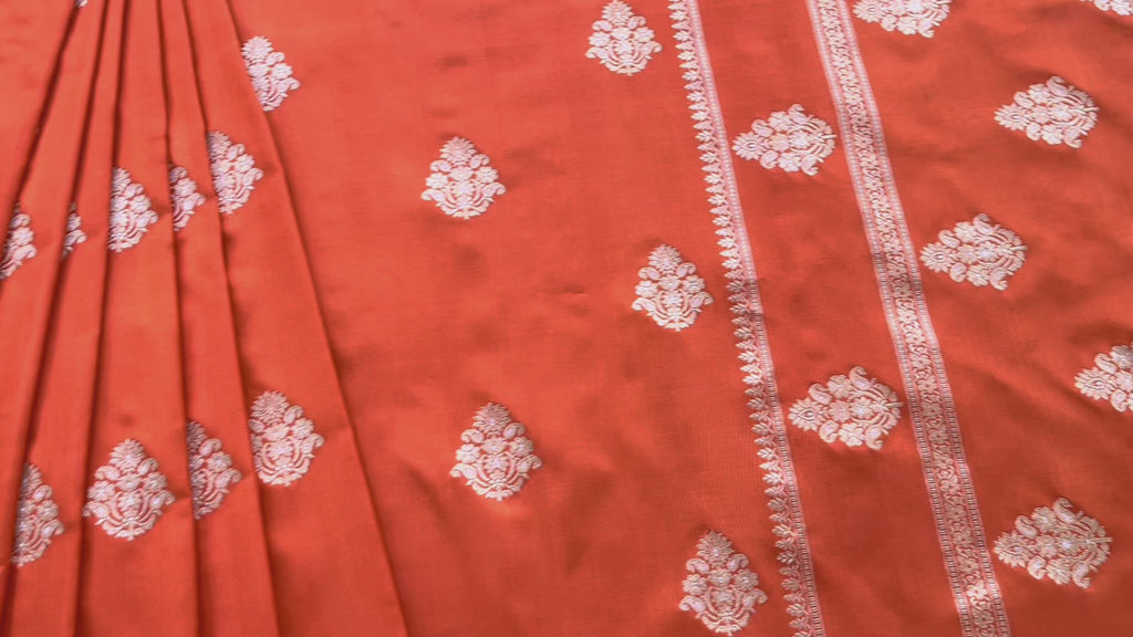Orange Kadhua Motif Pure Silk Handloom Banarasi Saree