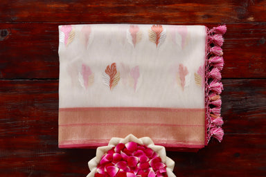 Soft Pink Pure Kora Silk By Tissue Handloom Banarasi Saree