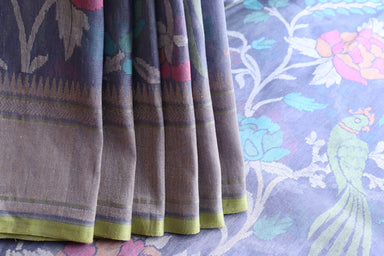 Grey Pure Zari Cotton Handwoven Banarasi Saree