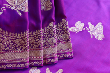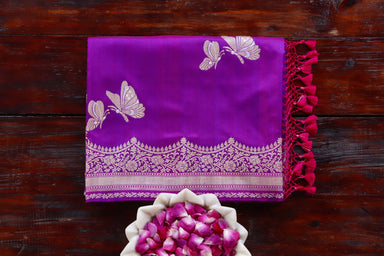 A Fine Stuti Creation! A Mesmerizing Pure Katan Silk Saree Charmed With The Exquisite Beauty Of Handwoven Butterfly Motifs, Intricate Floral Border...