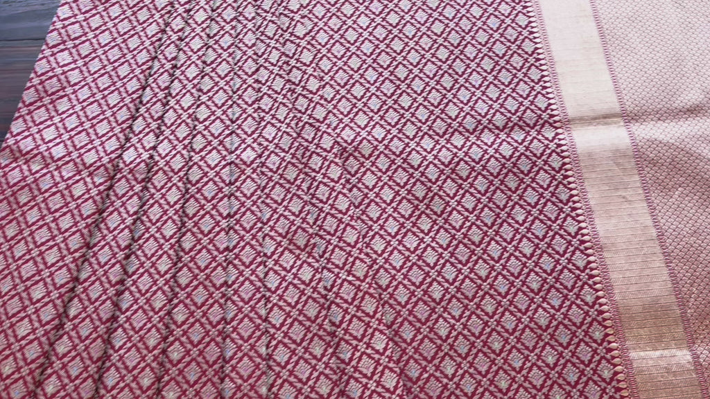 Burgundy Meenadar Tanchoi Pure Silk Handloom Banarasi Saree