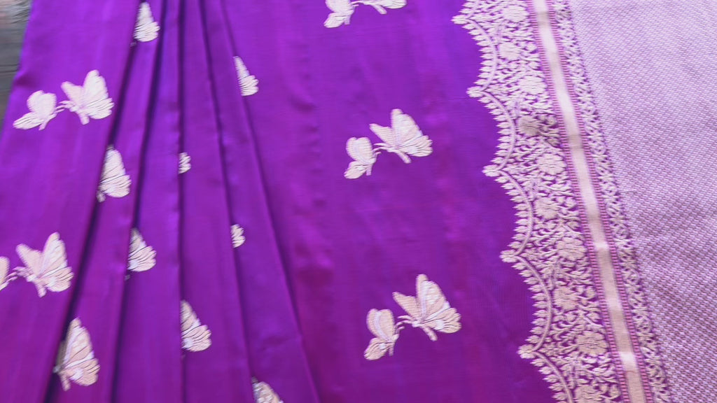 Purple Butterfly Motif Pure Silk Handloom Banarasi Saree