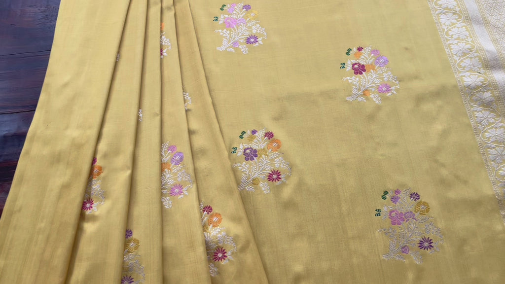 Yellow Guldasta Motif Pure Kora Silk Handloom Saree