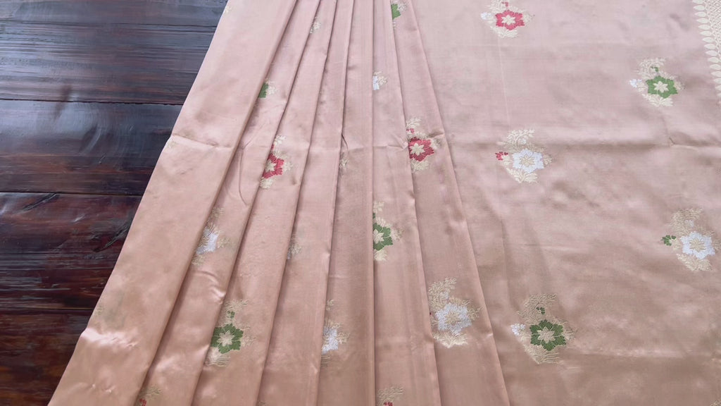 Peach Meenadar Motif Pure Silk Handloom Banarasi Saree