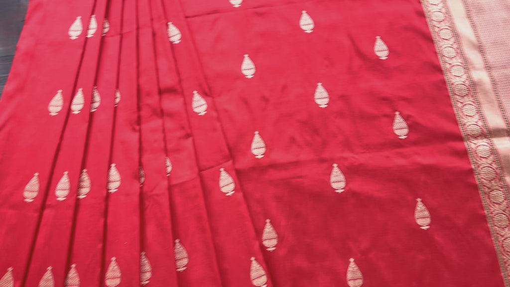 Red Aisha Kadhua Motif Pure Katan Silk Handloom Saree