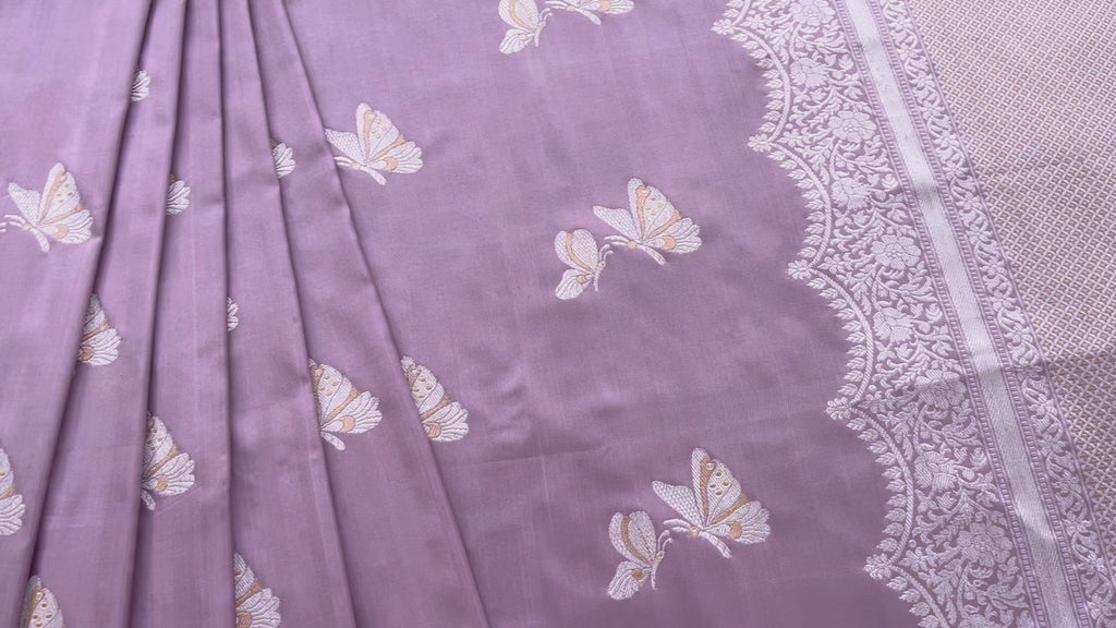 Lilac Butterfly Motif Pure Silk Handloom Banarasi Saree