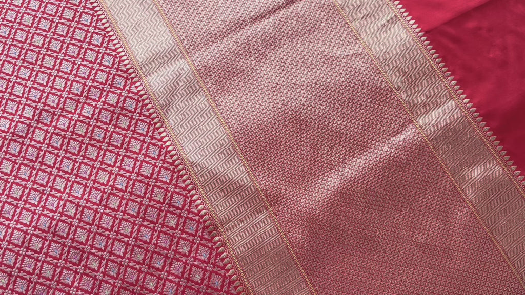 Red Meenadar Handwoven Banarasi Tanchoi Silk Saree