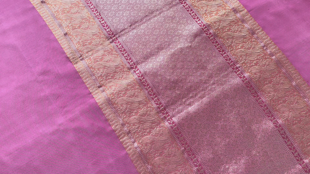 Pink & Orange Banarasi Handwoven Silk Saree