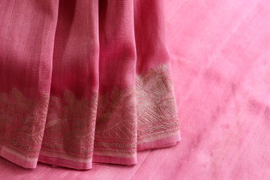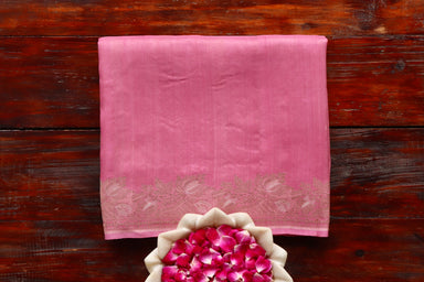 Minimal Yet Beautiful! A Gorgeous Banarasi Saree With Plain Silken Base Accompanied With An Intricate Floral Border And Kuniya Aanchal. Weave : Ka...