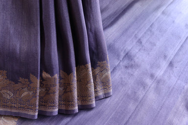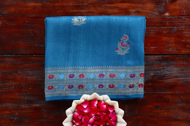 Ink Blue Guldasta Pure Tussar Silk Handloom Banarasi Saree