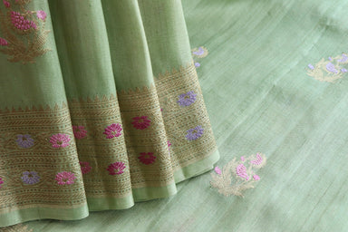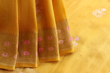 Featuring Delicate Phool Motifs With Fine Meenakari! A Magnificent Tusser Silk Saree Accompanied With Classic Work In Zari Set Against An Intricate...
