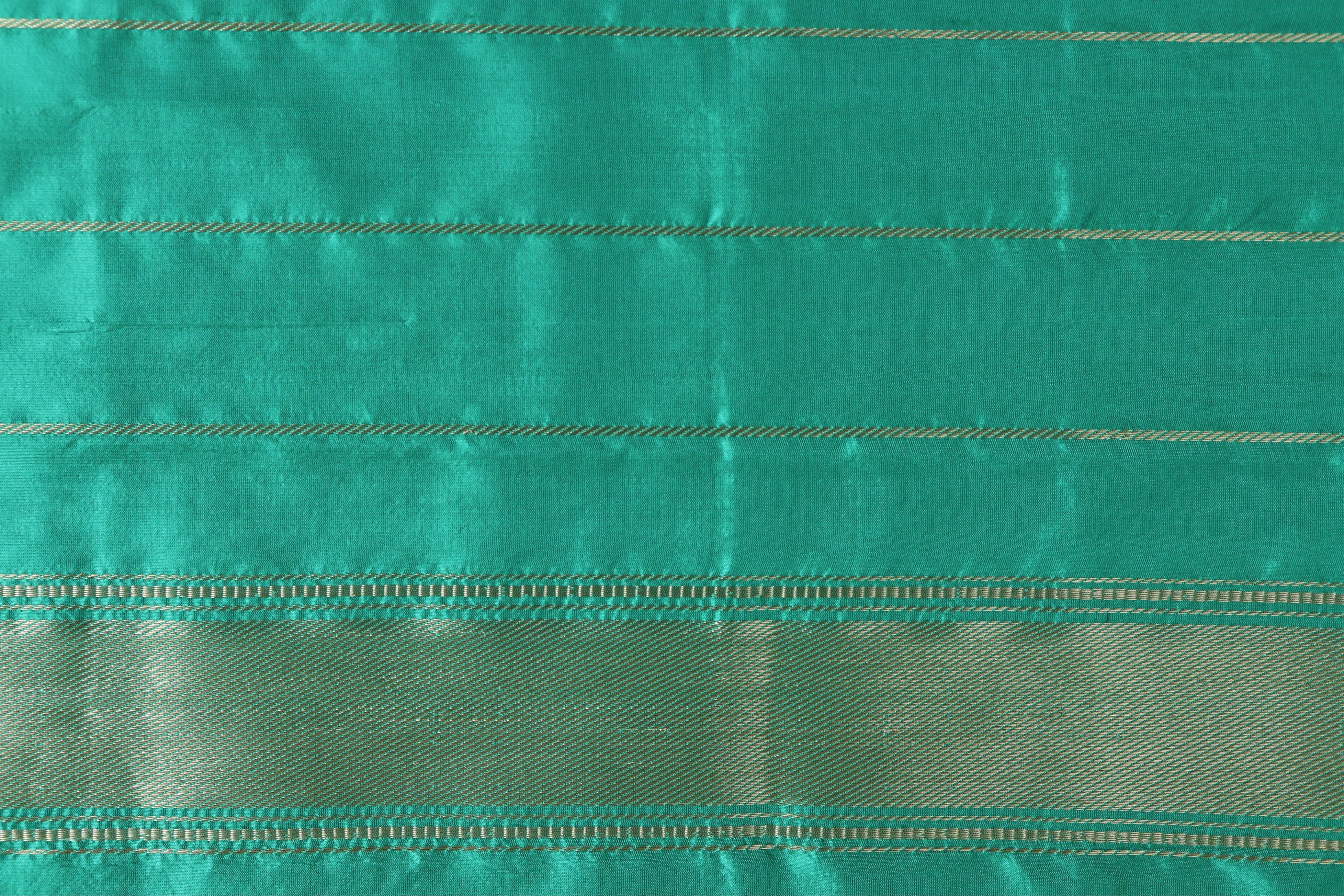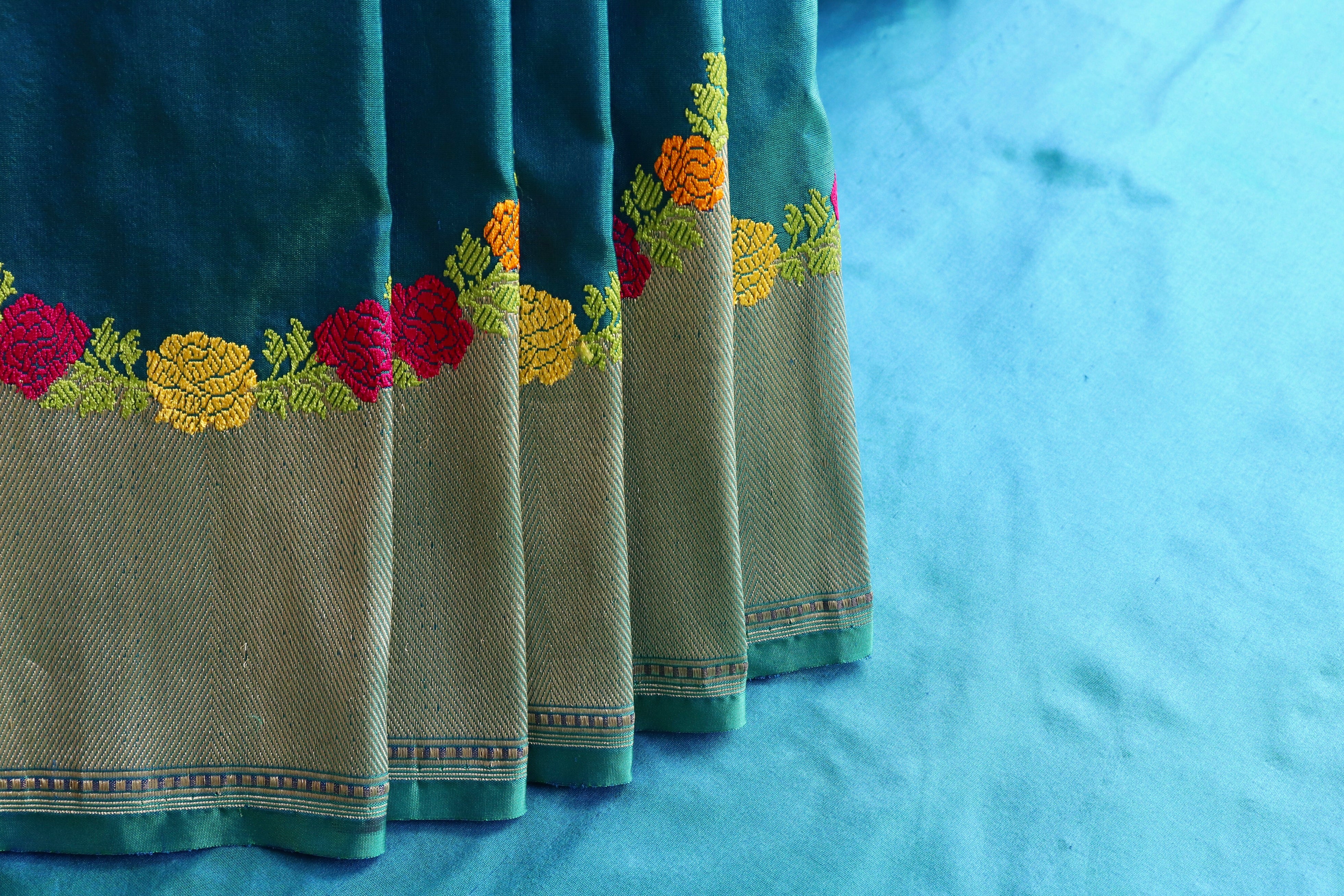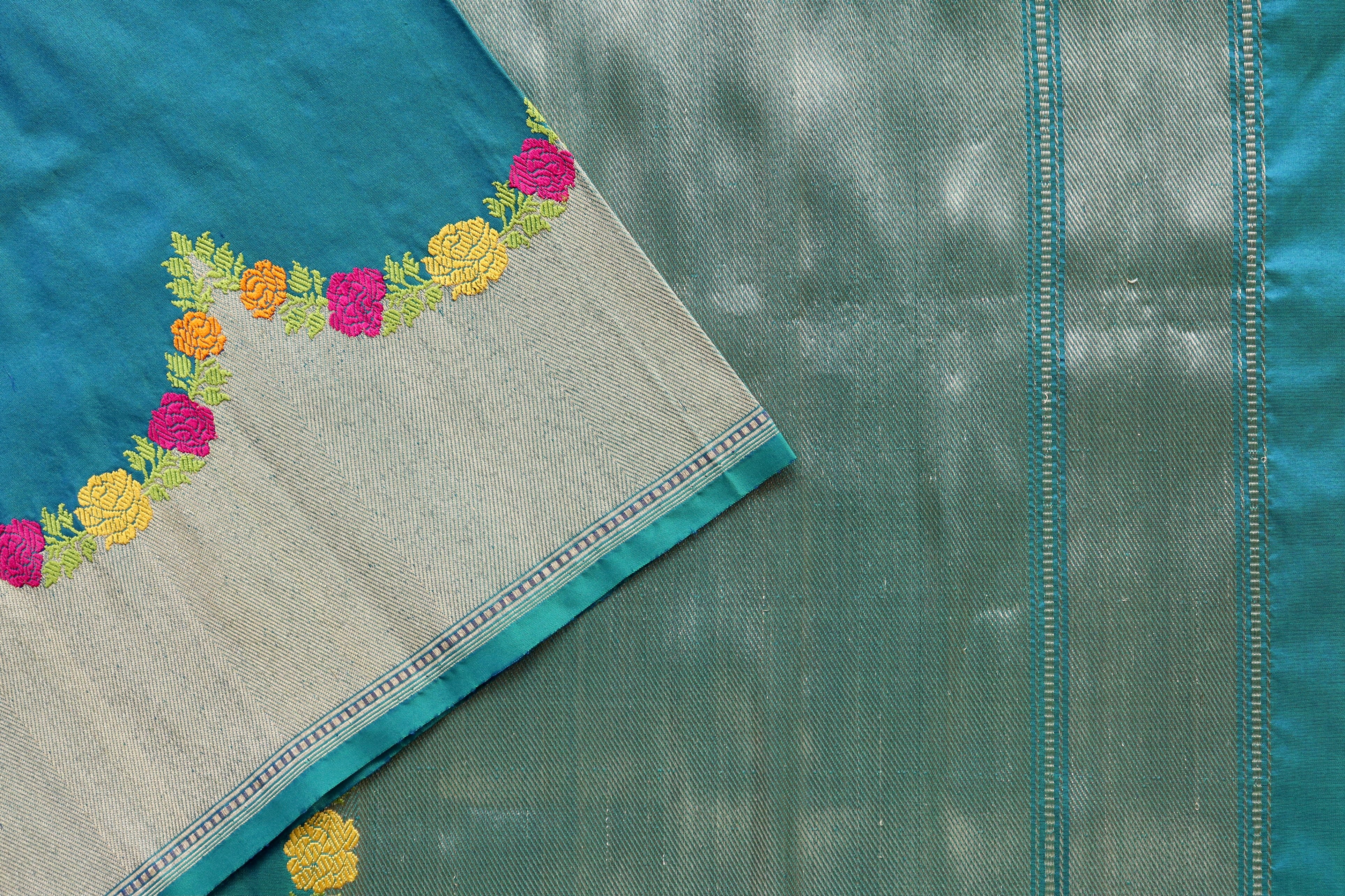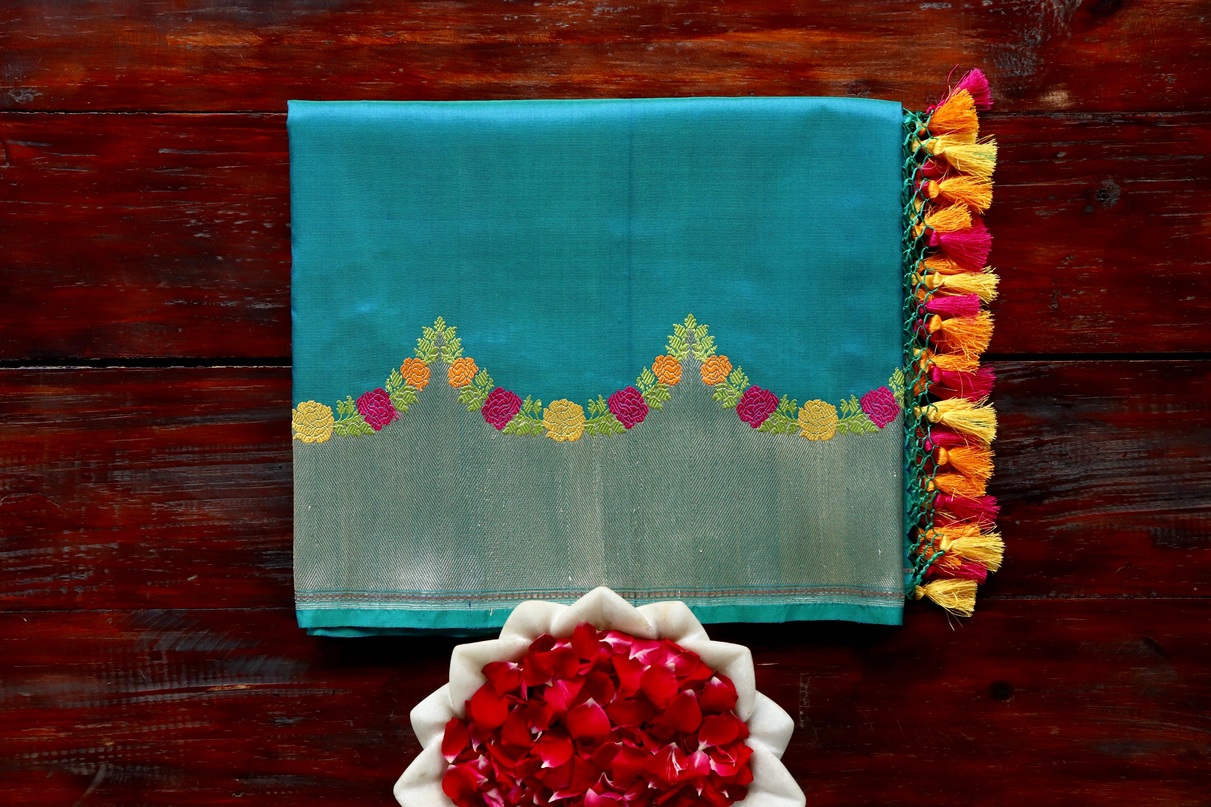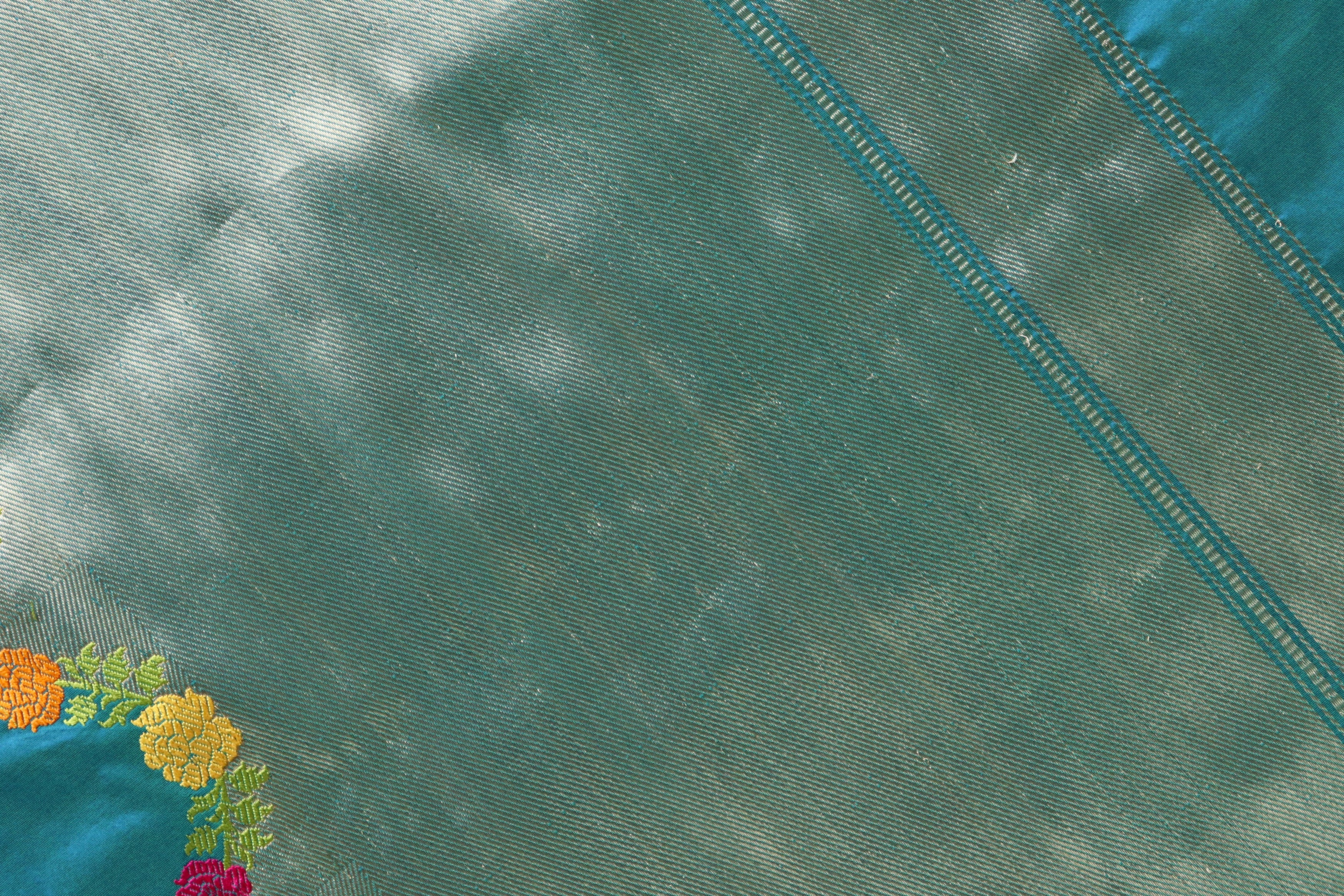 Peacock Blue Floral Border Pure Silk Handloom Banarasi Saree