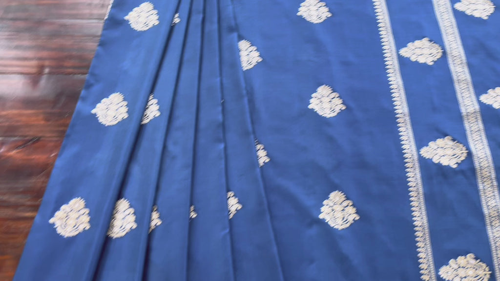 Blue Kadhua Motif Pure Silk Handloom Banarasi Saree