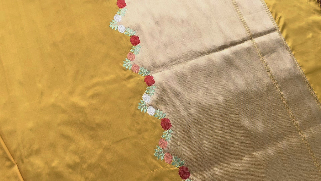 Yellow Floral Border Pure Silk Handloom Banarasi Saree