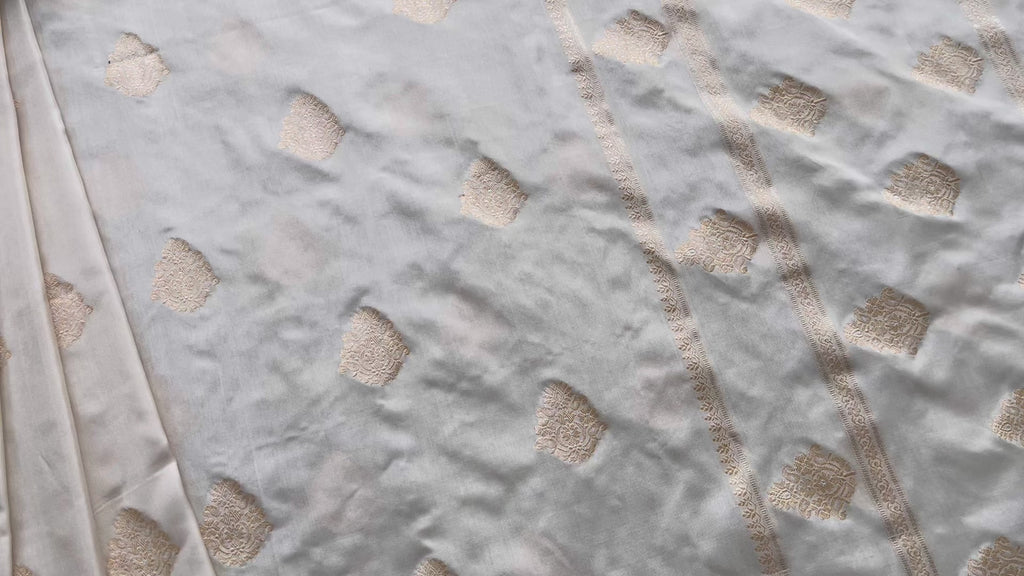 White Kadhua Motif Pure Silk Handloom Banarasi Saree