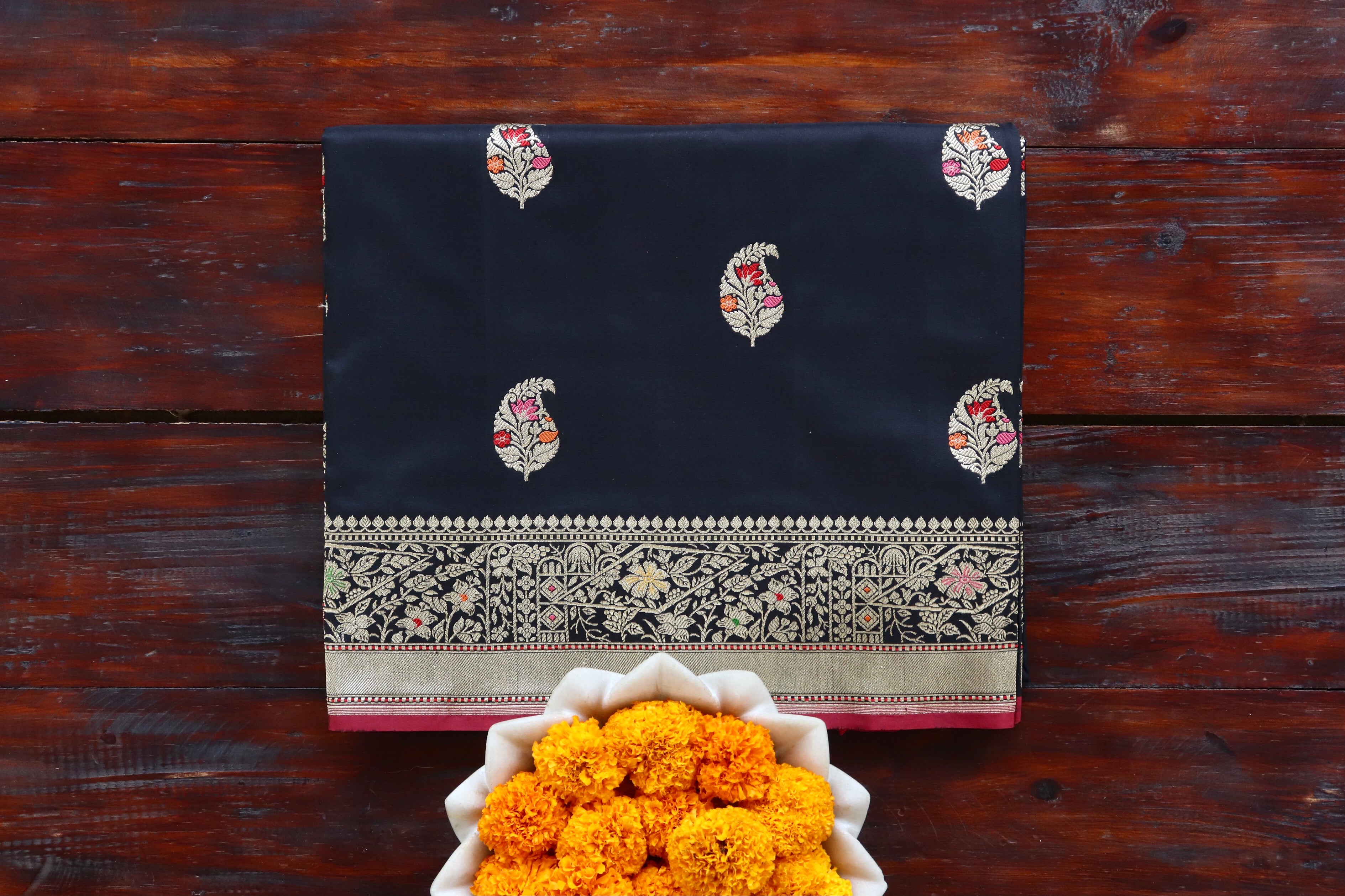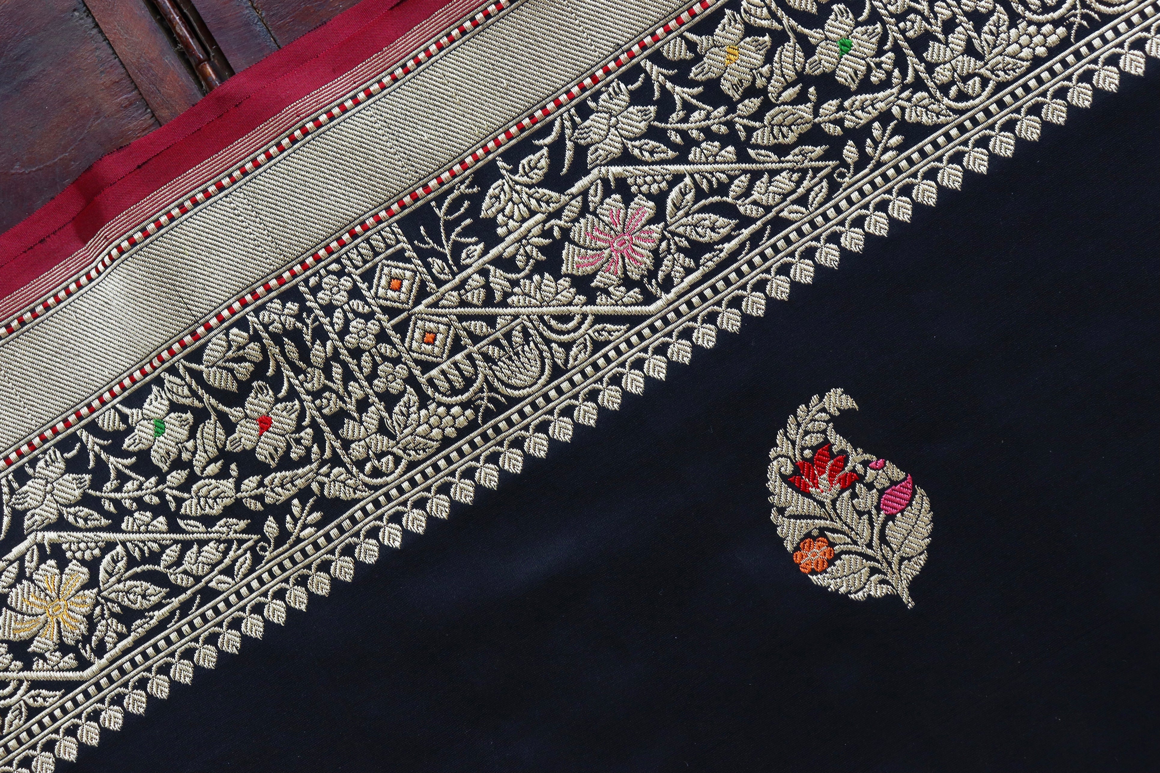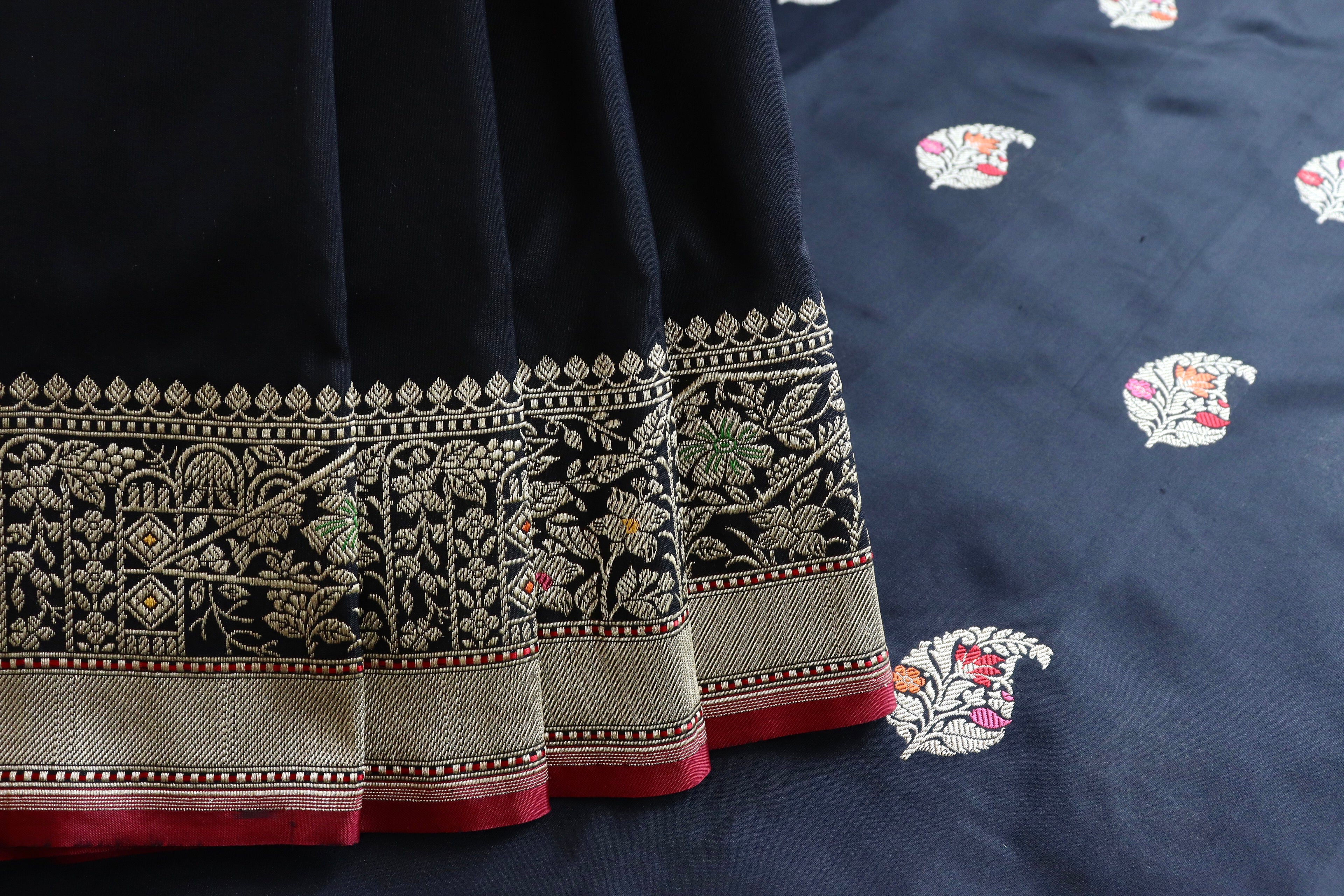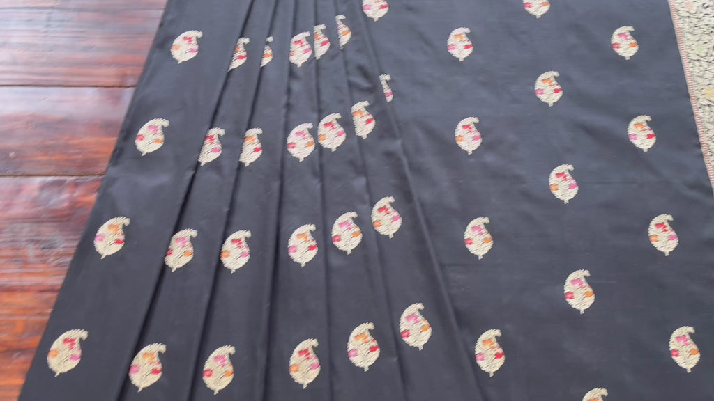 Black Kairy Pure Silk Handloom Banarasi Saree