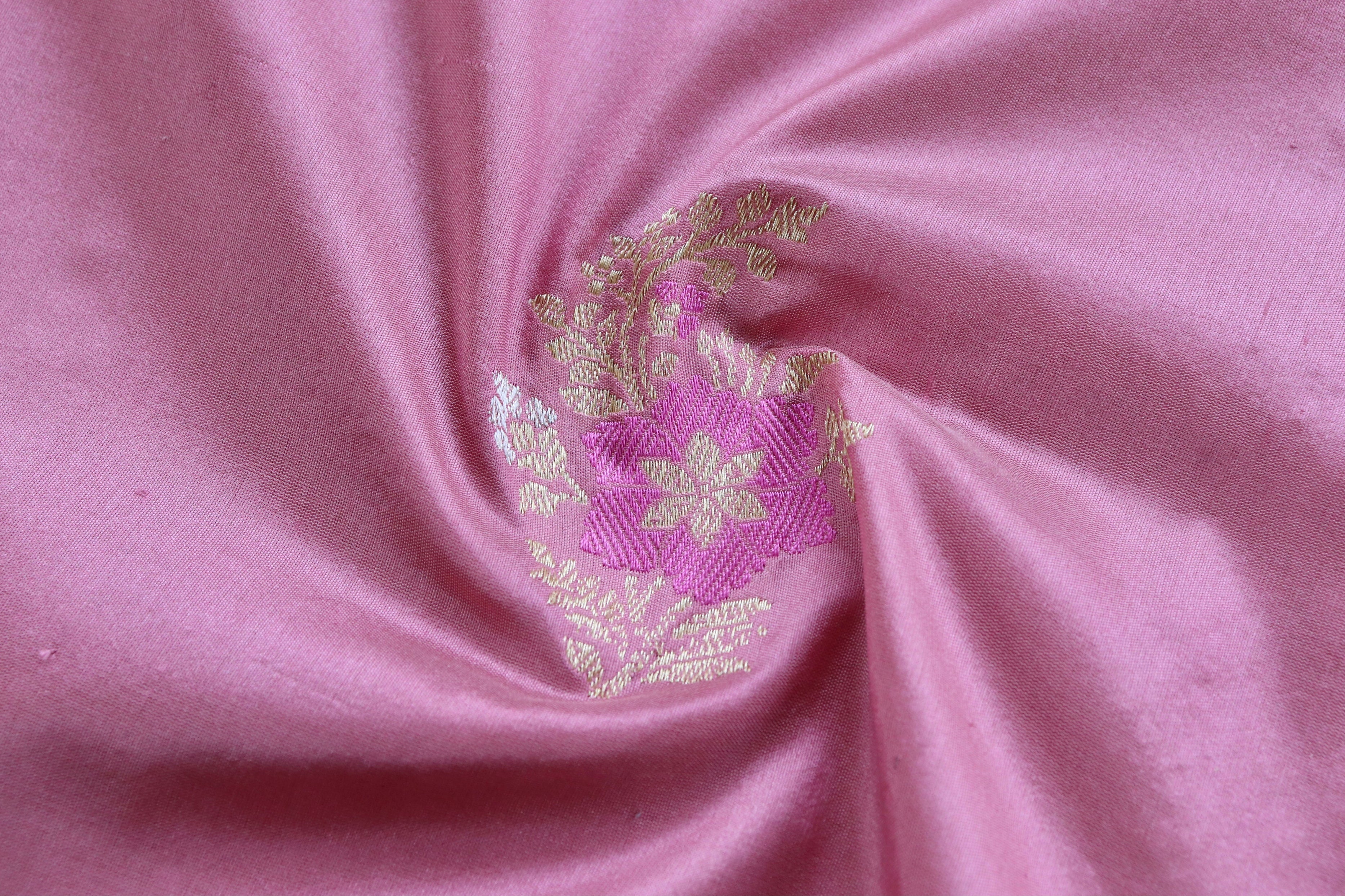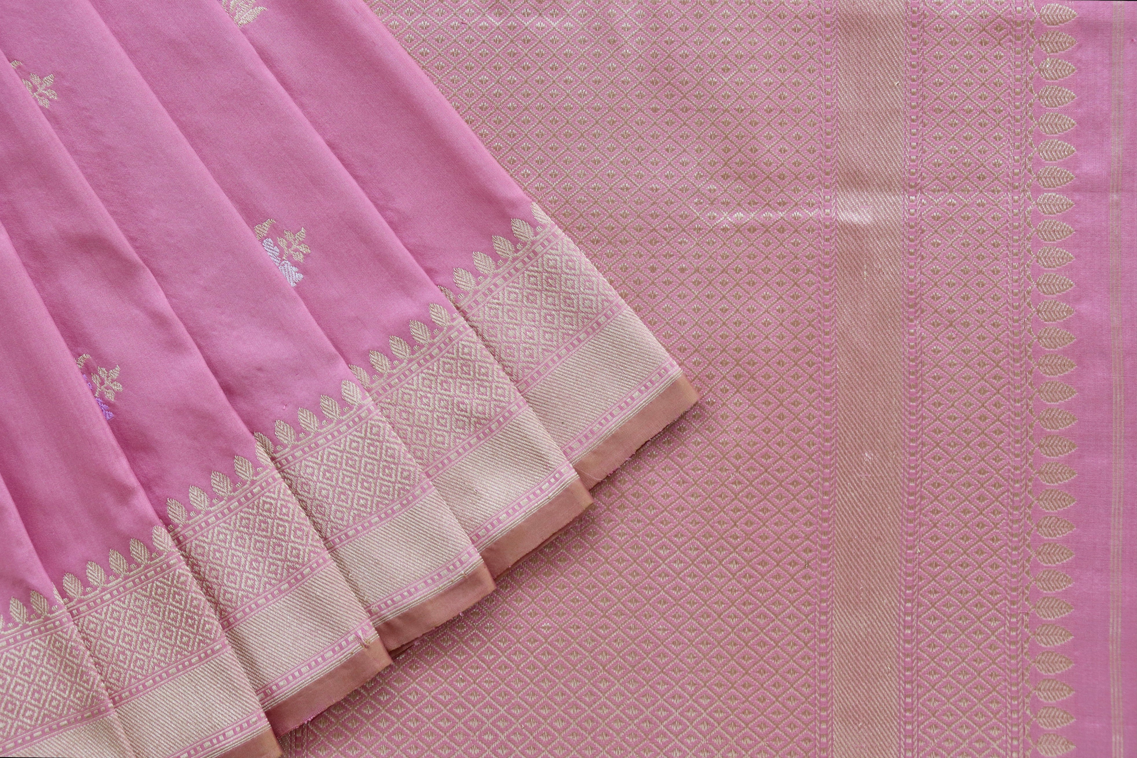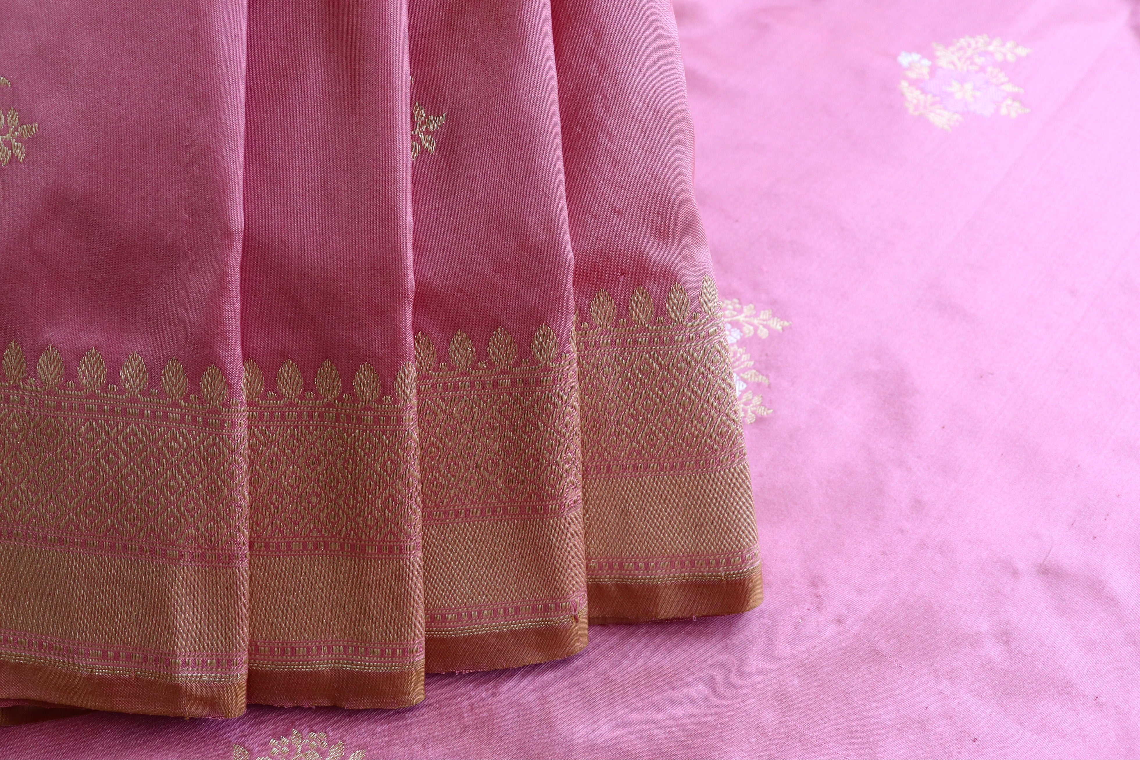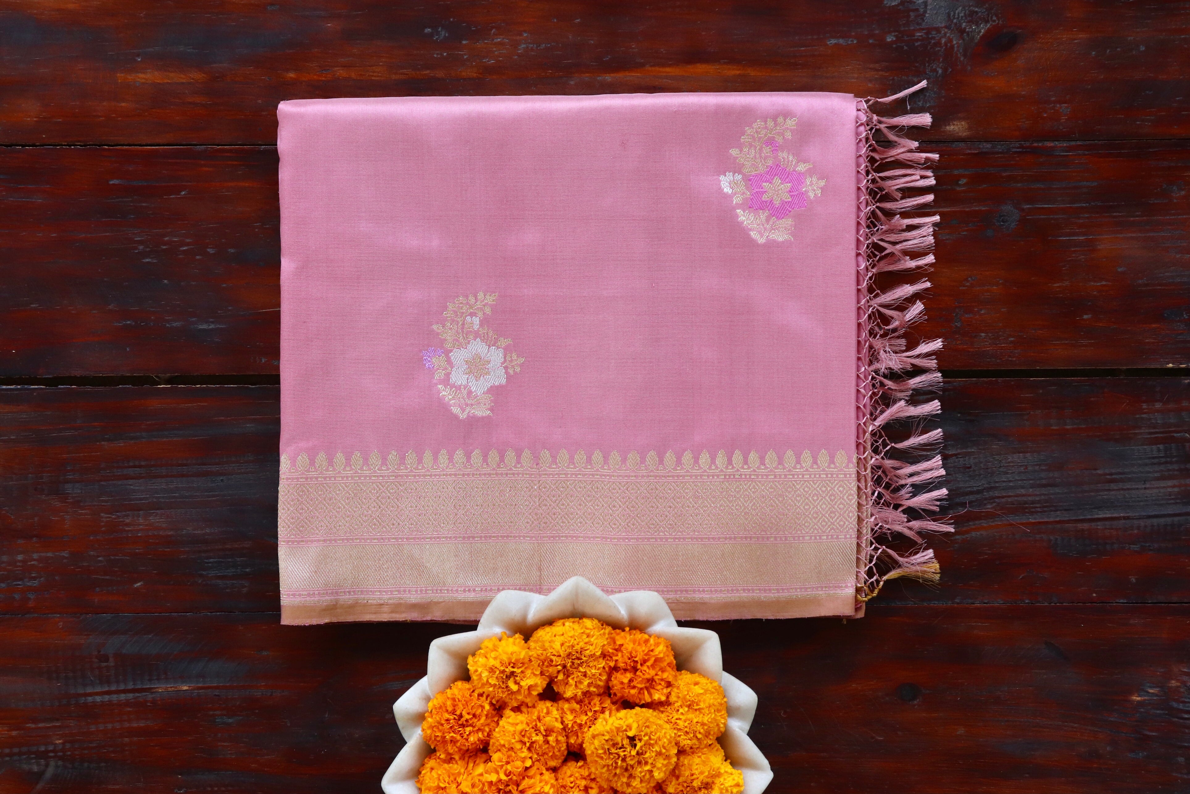 Taffy Pink Guldasta Motif Pure Silk Handloom Saree