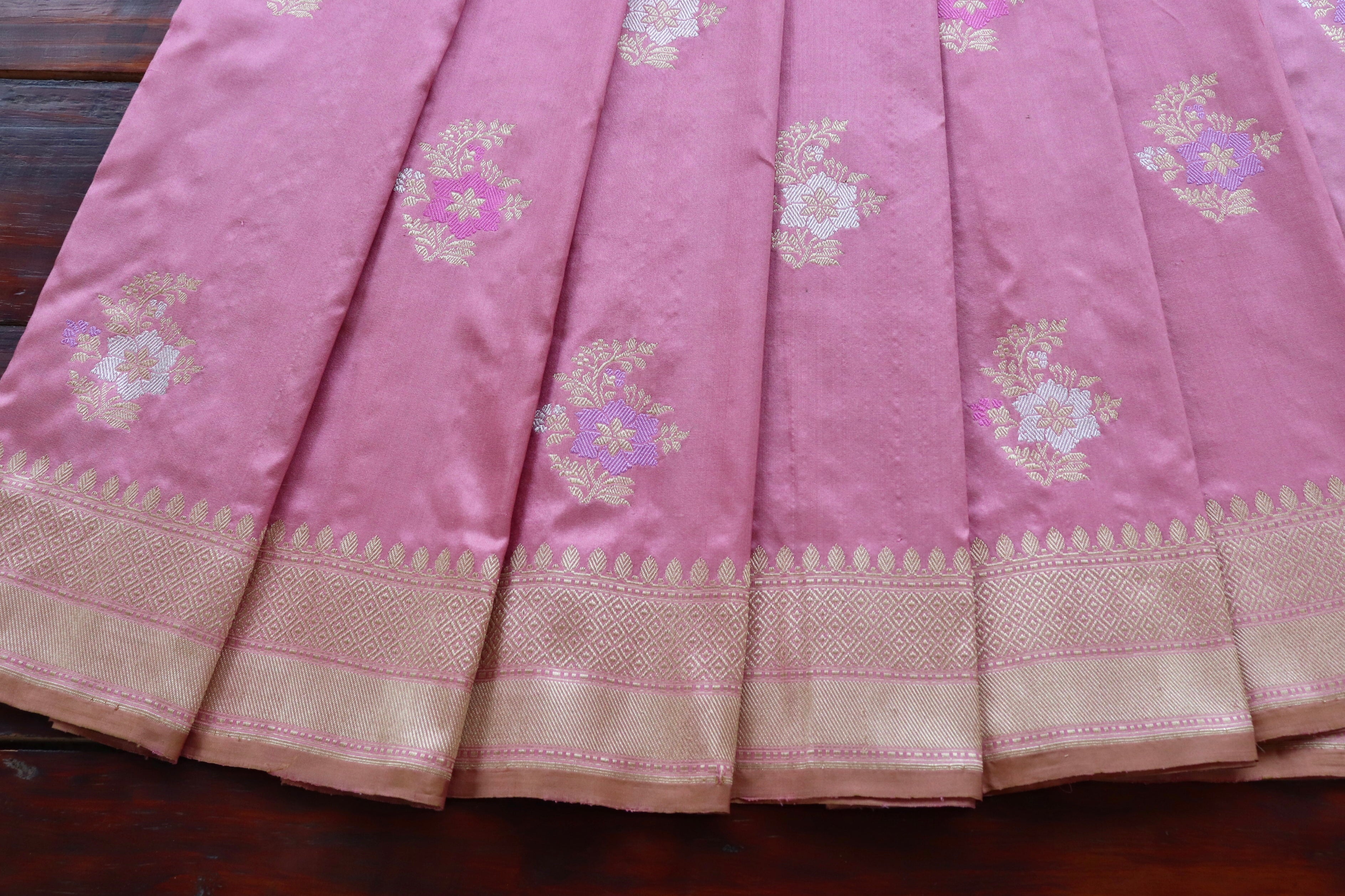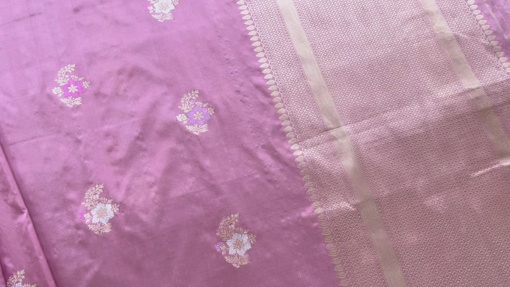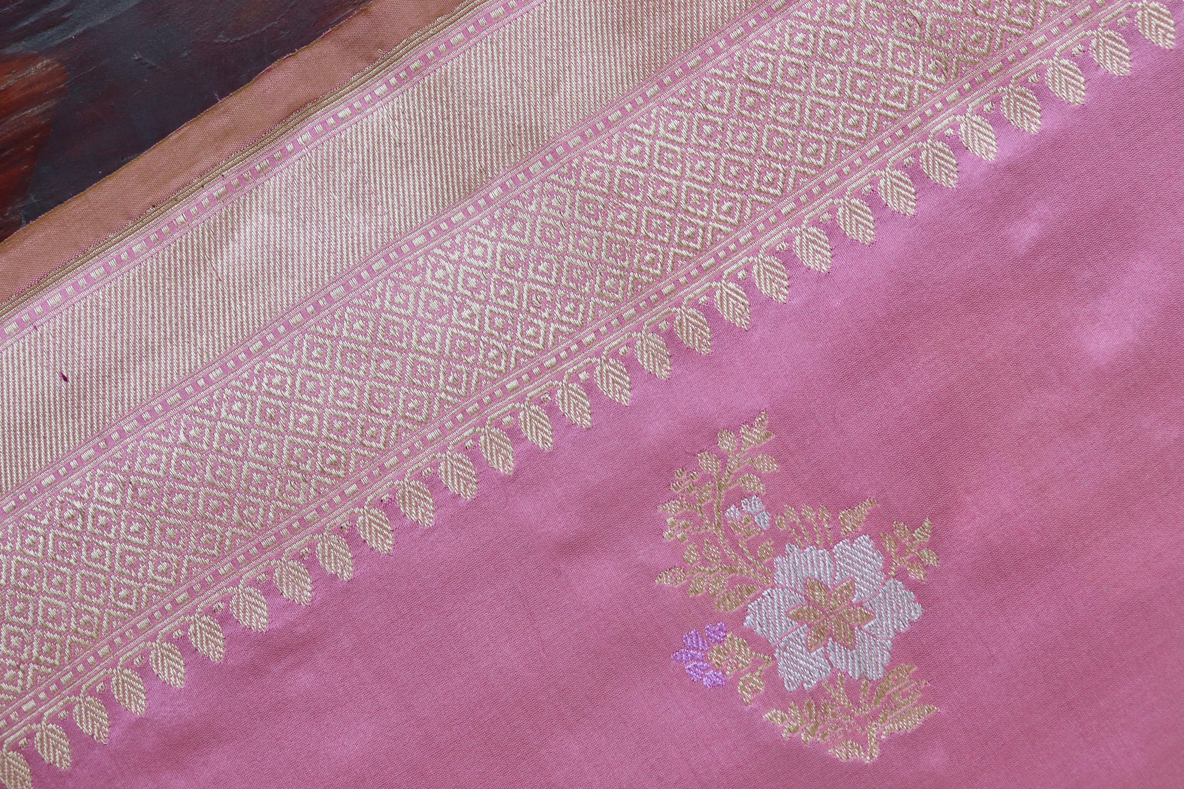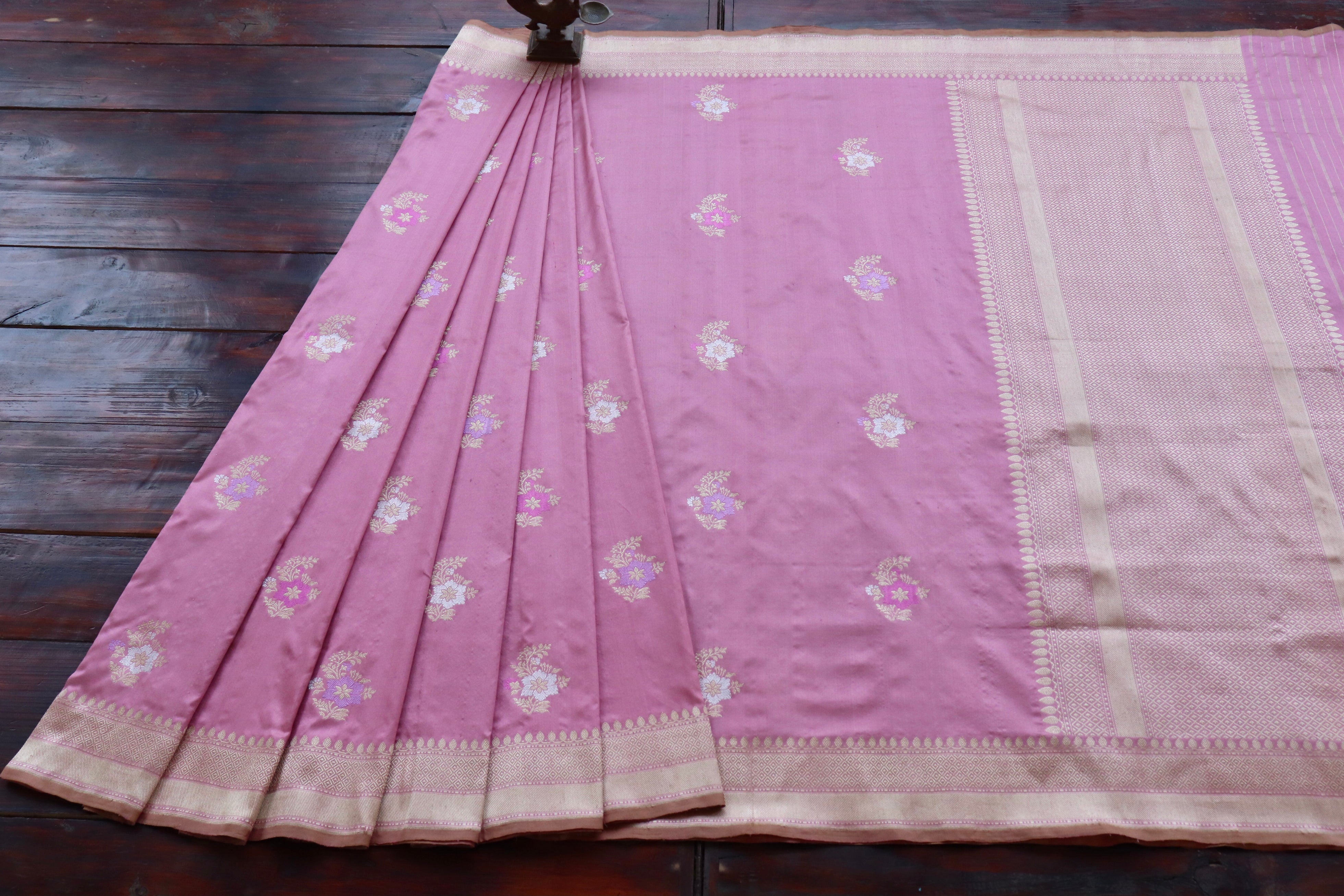Taffy Pink Guldasta Motif Pure Silk Handloom Saree