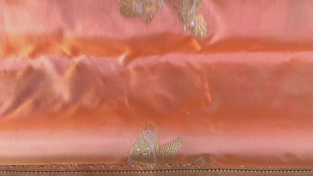 Peach Butterfly Motif Pure Silk Handloom Banarasi Fabric