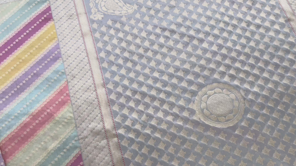 Multicolor Grey Banarasi Rangkaat Pure Silk Handloom Saree